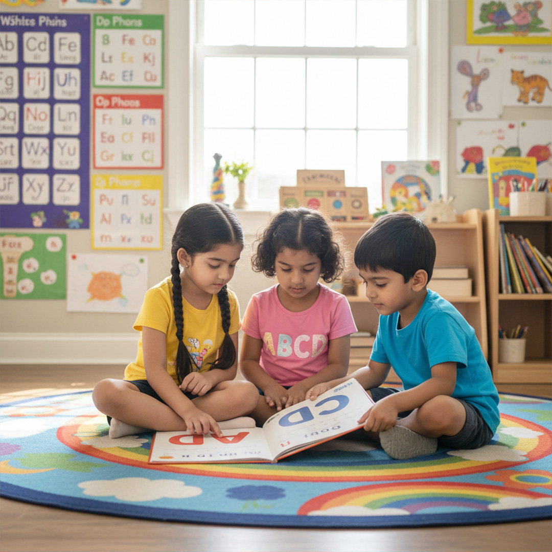 Our Phonics Program focuses on building strong reading and pronunciation skills in children. Using interactive activities, we teach children to recognize sounds, blend them into words, and read fluently.